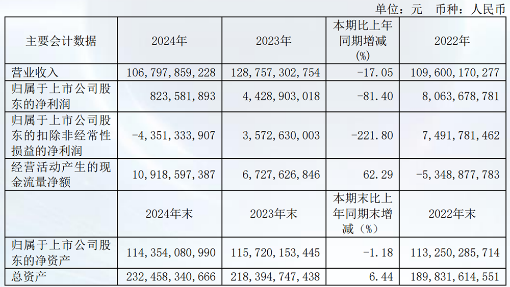 广汽集团2024年营业总收入为1077.84亿元,同比下降16.9%,这是广汽集团自2020年以来全年营收首次出现负增长,归母净利润为8.24亿元,同比大幅下滑81.4%,毛利率下降0.52个百分点。