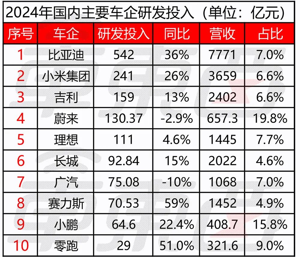 ▲2024年国内主要车企研发投入对比
