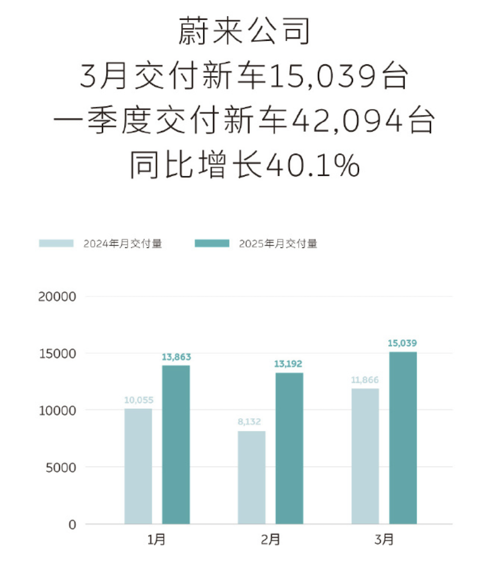 ▲蔚来汽车2025年3月销量