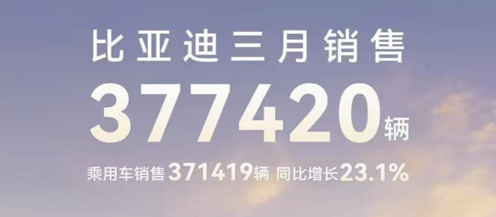 其中,比亚迪一季度销量突破百万辆大关,达到100.08万辆,同比增长60%。