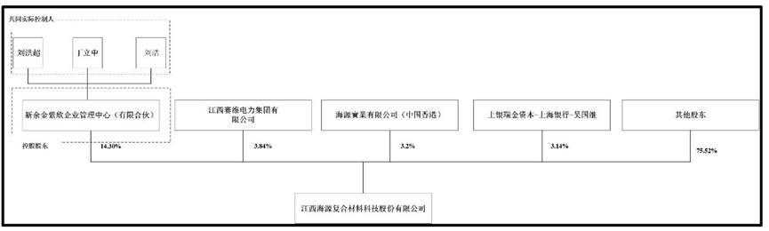 上述股权变动完成后,金紫欣将持有海源复材3717.5万股股份,持股比例为14.3%,成为海源复材的控股股东,刘洪超、丁立中、刘浩三人为共同实控人,而赛维电力转让上述股权后,仍持有海源复材3.84%股份。