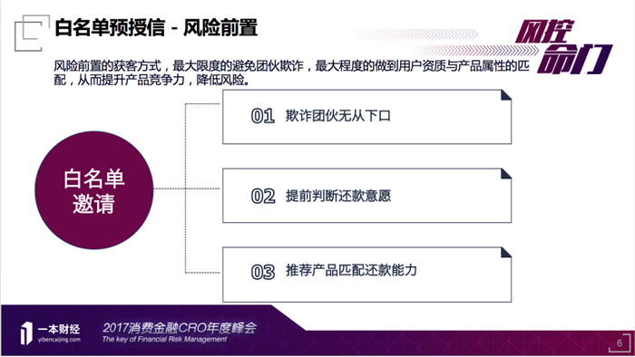预设白名单,一方面能改进用户体验,更快进行额度定位、审批;