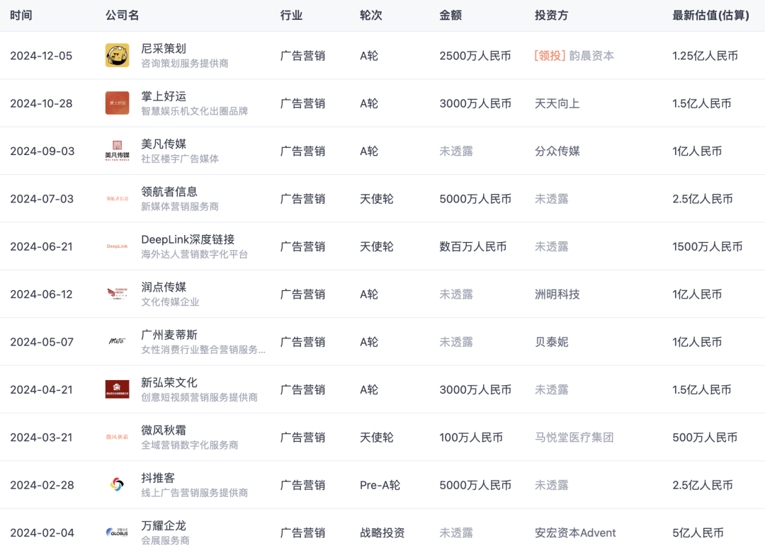 2024年国内广告营销行业投融资情况 图源:IT桔子