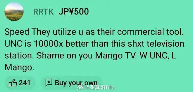 甲亢哥直播打赏弹幕(图源:新浪微博张戴阳Tillo)