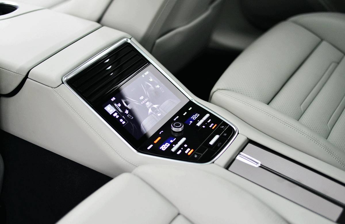 那为什么在后排和前排中我会选择前排呢,主要是因为座椅的角度。由于Panamera的车顶线条在B柱之后就开始下沉,所以后排座椅为了考虑到后排乘客能拥有合理的头部空间,将座椅的臀点设计得较低,同时为了保证对大腿的支撑,将坐垫的倾斜角设得就比较大了,结果就是坐得比较“窝”,对于肚子比较大的人来说会比较辛苦,而我这个瘦子不爱坐的原因是在后排用笔记本电脑时,电脑会顺着大腿滑到肚子上,而副驾驶则没了这个困扰。所以说虽然Panamera是一款能兼顾商务接待的轿跑,但是如果平时代步的话,还是建议自己驾驶或坐在副驾吧。