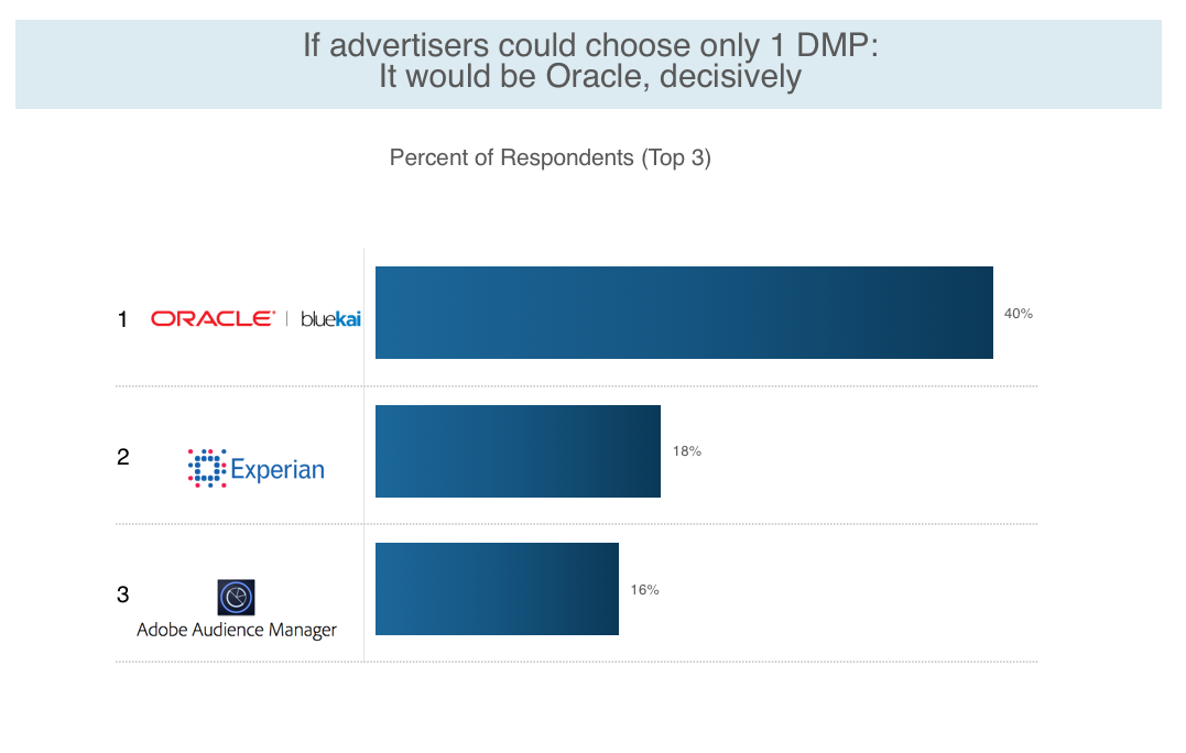 根据Advertiser Perceptions最新发布的报告,论及购买者对数据管理平台(DMP)市场的认知情况,Oracle BlueKai在这场游戏中简直碾压群雄。