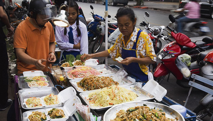 曼谷市政府对街头小摊贩出台了新的禁令。这些小摊贩推着小车,走过潮湿而溽热的街巷,售卖包括泰国经典面条和香辣冬阴功汤在内的一切泰式美食。事实上,街边小吃早已成为了曼谷的一道标志性风景。小摊贩随时随地都可以将金属折叠桌子和塑料椅子摆放在路边,招揽顾客,这种物廉价美的街头小吃是当地低收入人群和预算紧张的游客就餐的不二之选。