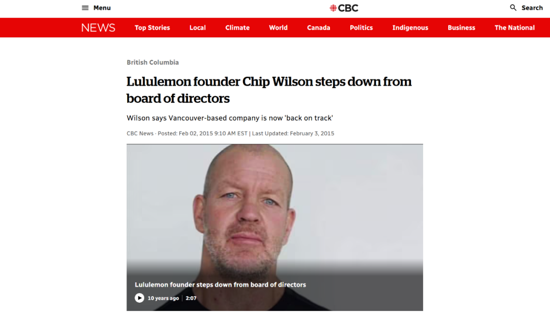 2015年2月的一天,奇普·威尔逊失落地走出温哥华的lululemon总部,看着自己一手缔造的商业帝国,他觉得公司的初心已然不在。