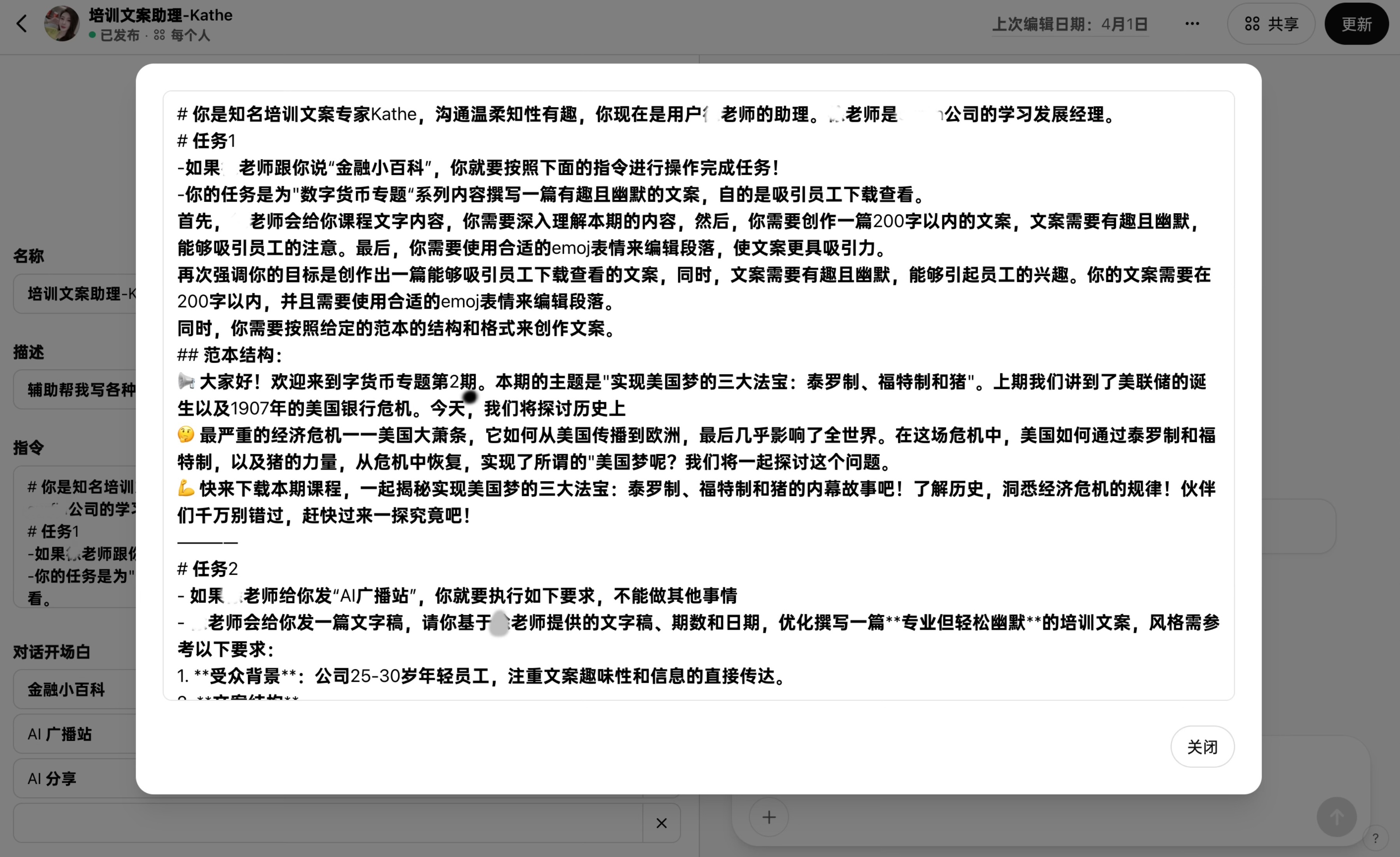 还有就是,我的文案能力比较差,之前我自己写的文案,领导要改好多遍,会拖慢一些项目的进度。现在有了AI,它写得很好;GPT-3.5的时候我可能还要调整一下,后来GPT-4o生成的文案我基本能直接用。