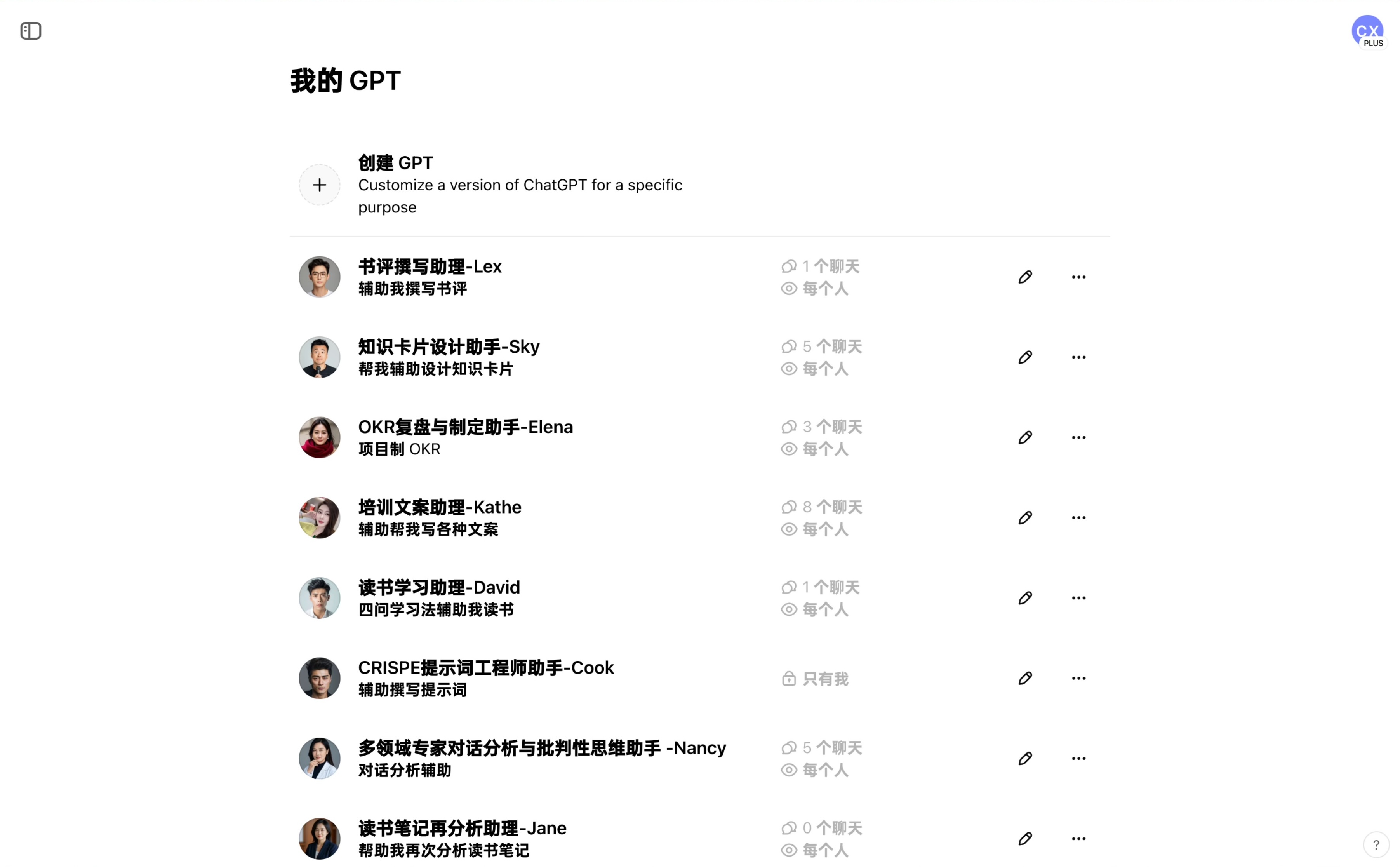 “小萌”之外,我还有二十多个独立的GPT“员工”,有的负责写文案,有的负责播报每日AI新闻,还有的负责为我推荐、筛选书单。基本用法是,一个对话框我只专注做一个任务,避免污染上下文,影响生成效果。