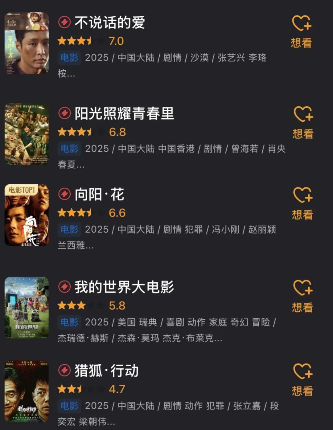 今年清明档的头部电影公司集体缺席,最为活跃的是手握《不说话的爱》《向阳·花》两部影片的爱奇艺影业,而五一档目前也只有光线传媒一家头部下场,拿出的还仅仅只是一张“保底牌”。