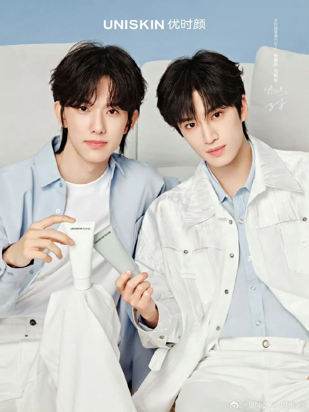 一群愿意为 “氛围感” 买单的粉丝,比一部爆款剧更具想象空间,由 CP 粉驱动的流量势能直接转化为为品牌合作的硬通货。今年第一季度,蜜丝婷、蒂佳婷、资生堂等品牌先后官宣代言合作,此外,张康乐还与马柏全共同拿下 UNISKIN 优时颜 “双生代言”,礼盒官宣仅两分钟,便在全网售罄。