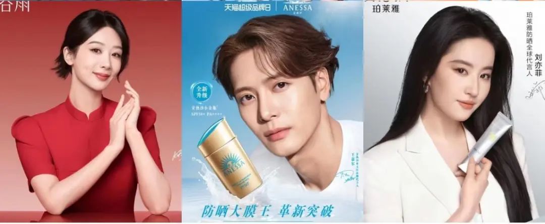 1 月,谷雨率先官宣杨紫为全球防晒代言人,2 月,薇诺娜签约魏大勋,同月成毅成为 MISTINE 全球代言人,随后,美肤宝、安热沙、花西子等品牌也相继押注,以顶流明星为支点,撬动不同圈层消费心智。