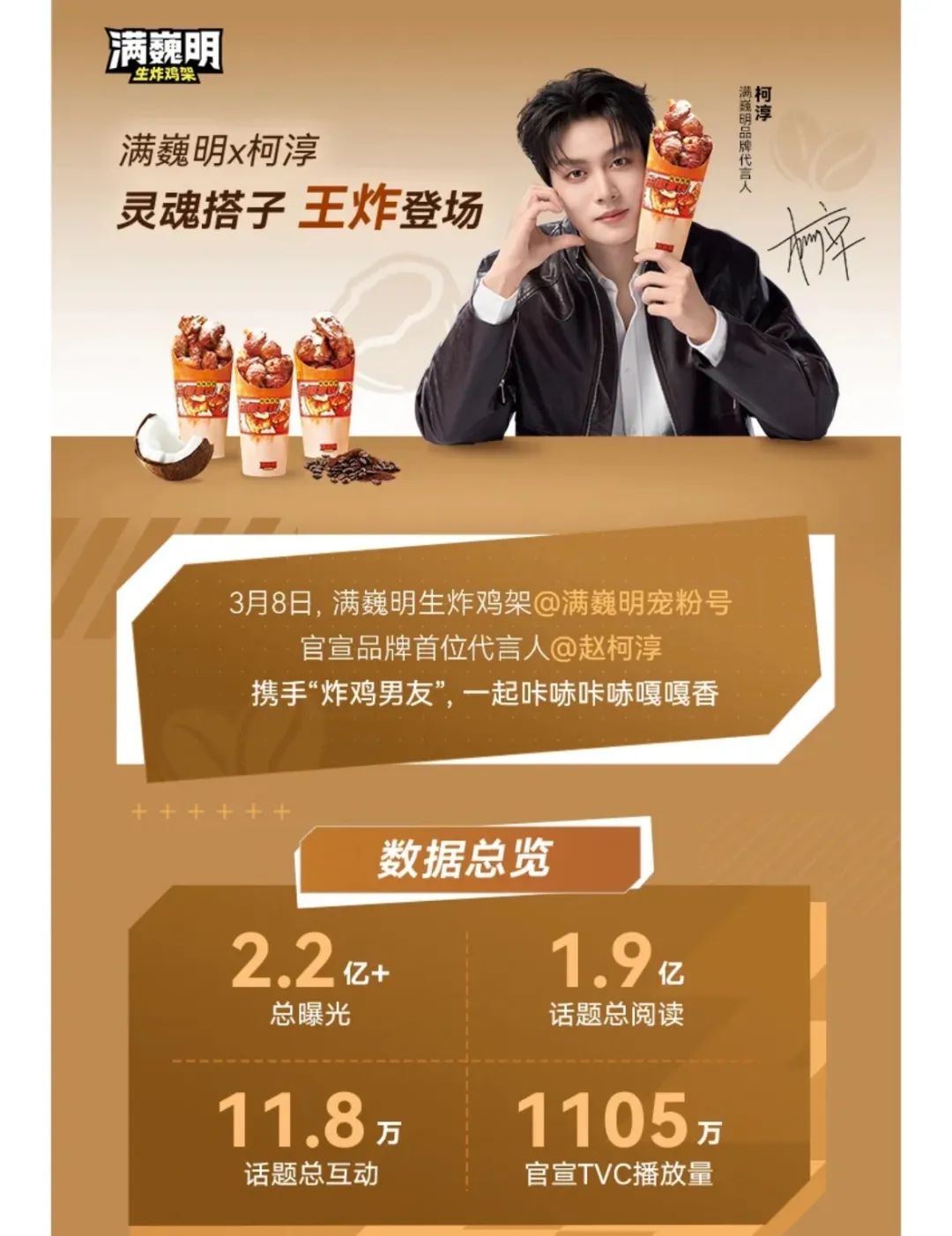 代言成效显著,马小宇担任唐魅可代言人后强势拉动品牌销量增长,同款产品淘宝店铺热销第一,成交订单量更是突破 30 万;柯淳更是凭借自身影响力,为品牌带来了现象级的传播热度,满巍明收获总曝光量超 2.2 亿,话题总阅读量达 1.9 亿,话题互动量 11.8 万,甚至超越部分明星代言效果。