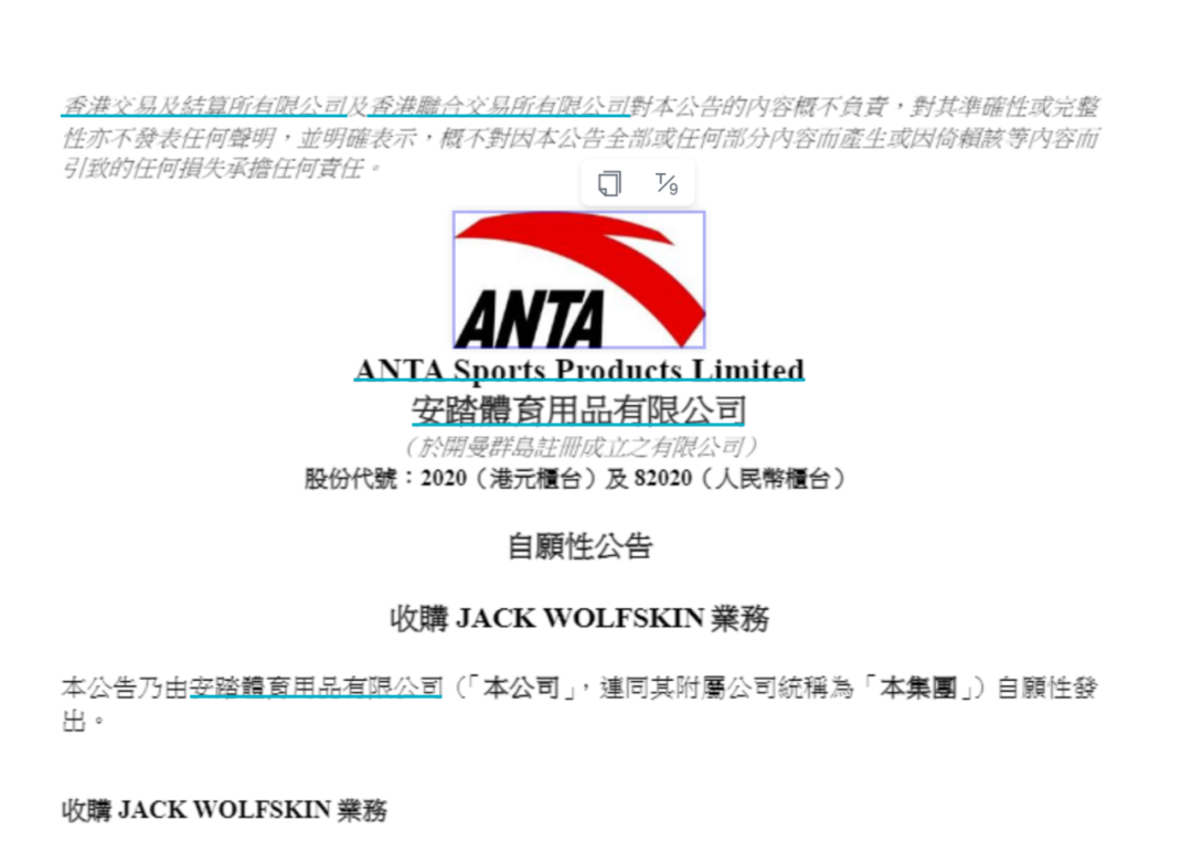 安踏体育(2020.HK)在并购的道路上又攻下一城。
