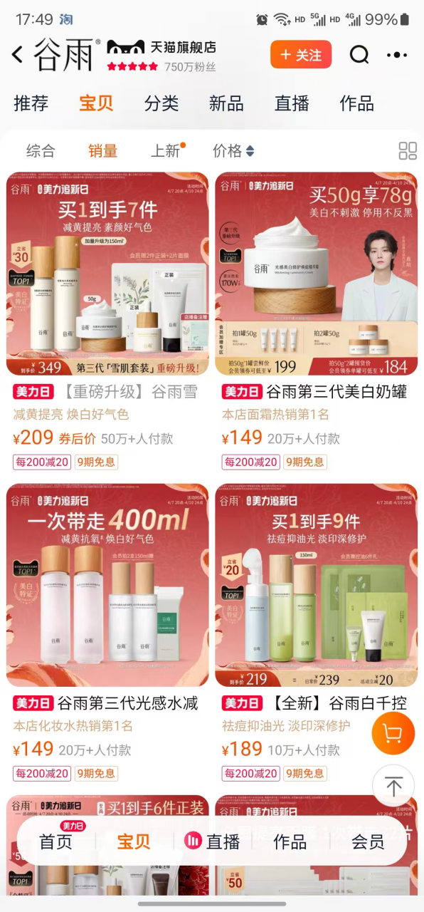 从2016年试水淘宝直播,到2018 年入驻小红书,再到2020年后重仓抖音、快手,谷雨构建了一套 “内容种草+直播带货” 的完整链路。小红书上,“谷雨光感水”“谷雨光甘草定”“谷雨美白奶罐”等内容,都拥有1万+篇的笔记。