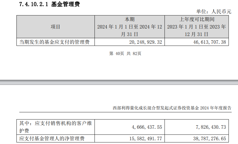 亏损超过10个亿,西部利得量化成长一年却收取了2024.89万元的管理费。