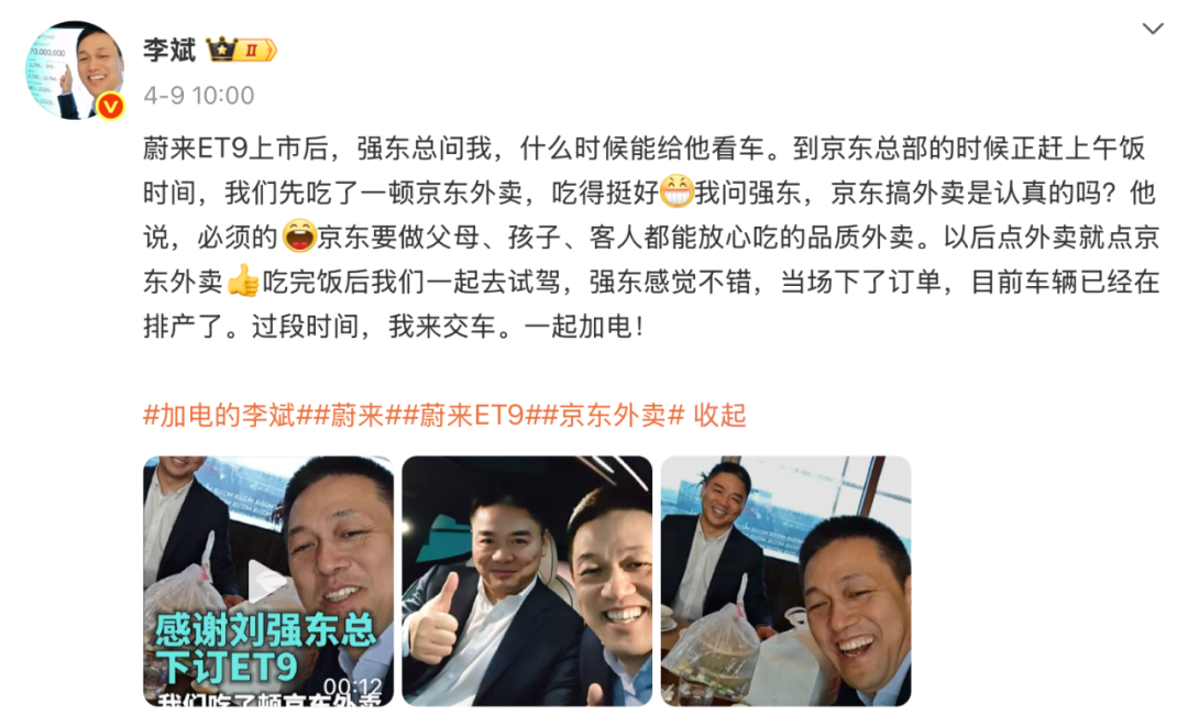 值得一提的是,就在王莆中评价京东外卖不久前,蔚来汽车创始人李斌在和刘强东见面时,还曾问及刘强东关于京东进军外卖一事。