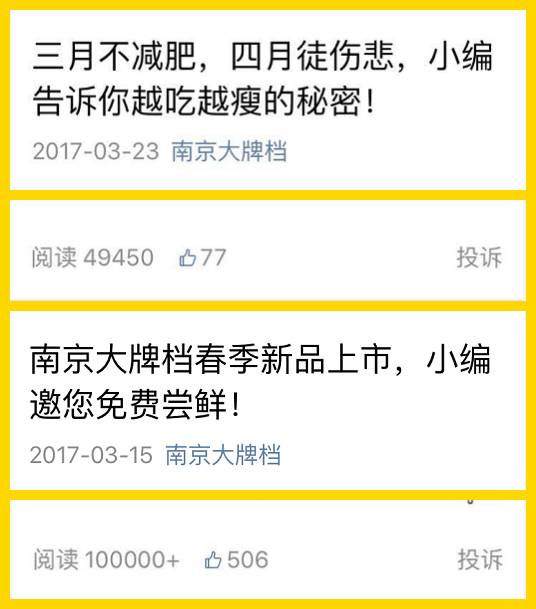 以 3 月中下旬南京大排档的两次推送为例。 3 月 23 日一共推送了六条,内容从产品到设计再到活动应有尽有,粗略算了一下阅读量,六条加起来大概在 8 万左右。3 月 15 日推送一条,内容主要是介绍新品的,阅读量达到了 10 W+ 。