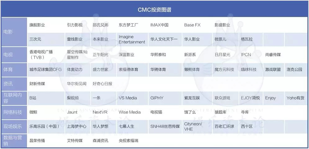 除了经纪业务之外,公司还涉及影视制作投资、媒体版权分销、投资银行、品牌营销、风险投资等领域。