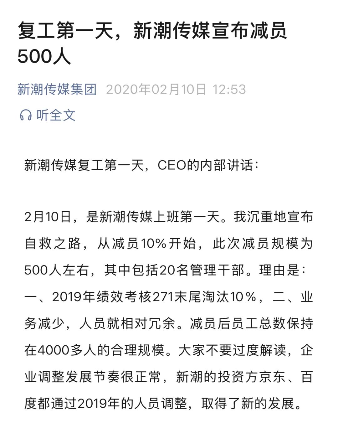 2020年2月,其更是将“减员500人”的公告发在了公司的官方微信公众号上,几乎是在官宣自己“撑不住了”。
