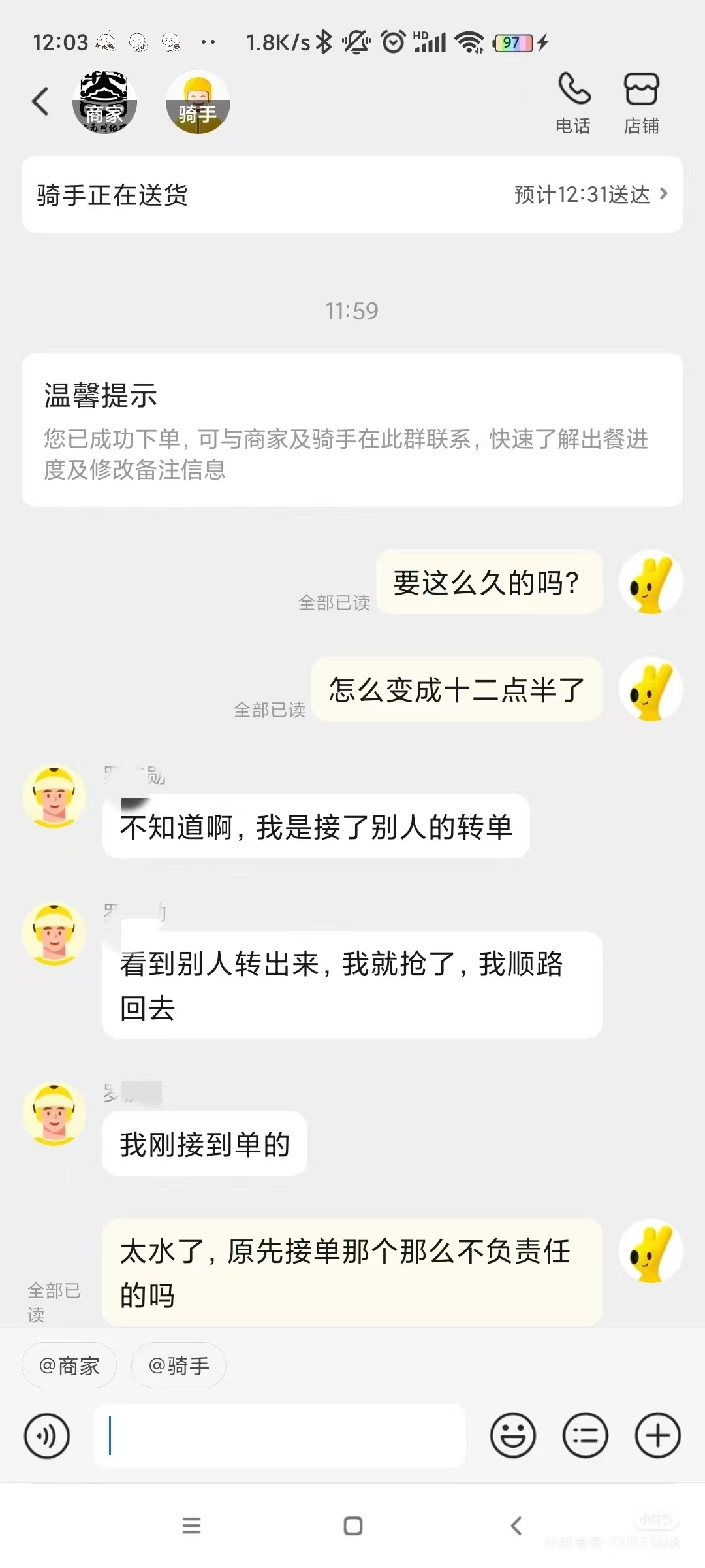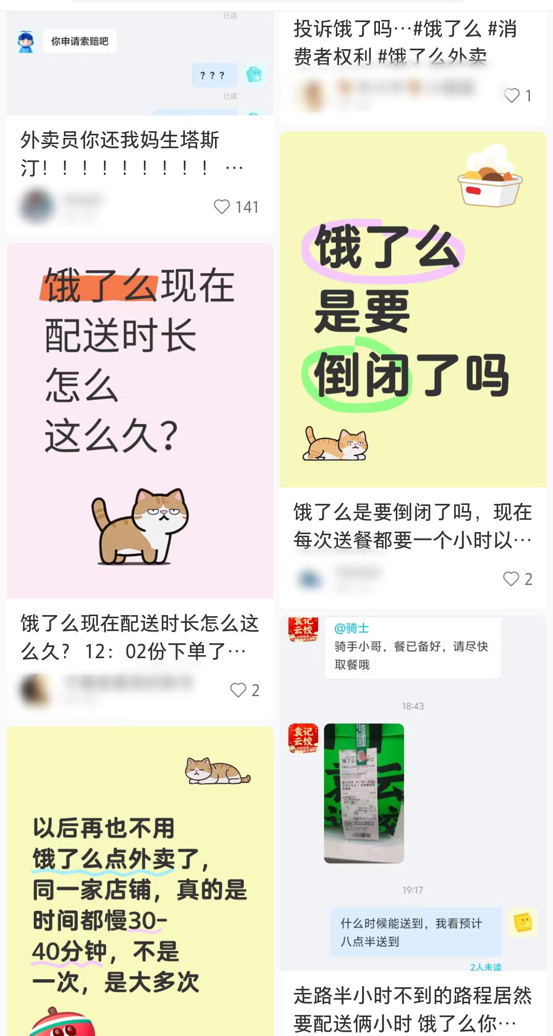 在他看来,“很无语,两三公里的外卖,他给我送一个多小时,到了以后外卖都凉了。”