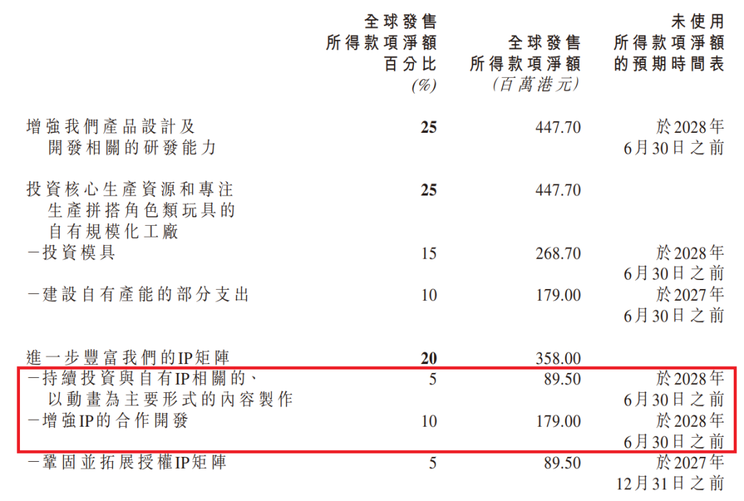 而在自有IP上,布鲁可在财报中也透露将在后续投入上市募资中的5%,约8950万港元用于“与自有IP相关的以动画为主要形式的内容制作”,此外还将投入1.79亿港元用于“增强IP的合作开发”。目前,布鲁可拥有两大自有IP“百变布鲁可”及“英雄无限”,其中后者在2024年创造了约3.10亿人民币的收入,同比暴增382.7%,位列本文统计的IP收入排行榜中第22位,也是布鲁可24年四大创收IP之一。