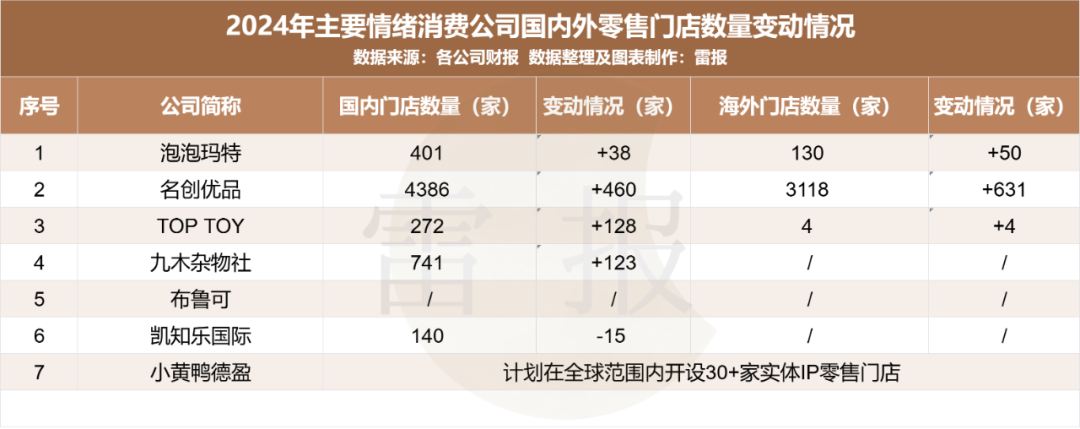 可以说,过去的2024年,“扩张”是情绪消费在线下渠道的年度关键词。这种扩张除了在上表的上市公司中有所体现外,在二次元零售品牌中更为明显。雷报曾在《二次元零售品牌谁将笑到最后?》《数读2024:从爆发到熄火?谷子经济的未来将走向何方?》等文章中对此有详细论述。