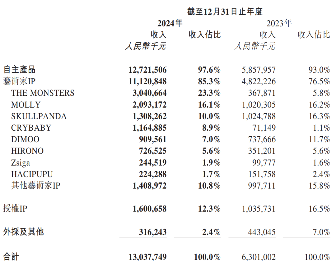 这笔账算得没错,做大IP的自研产品确实也是TOP TOY当下的最优解。实际上,与名创优品2024全年4.21亿的授权费相比,泡泡玛特同期由于自主产品占比增多及联名产品增加,设计与授权费用也高达3.93亿元,涨幅更是远超名创的29.5%,达到了150.8%。