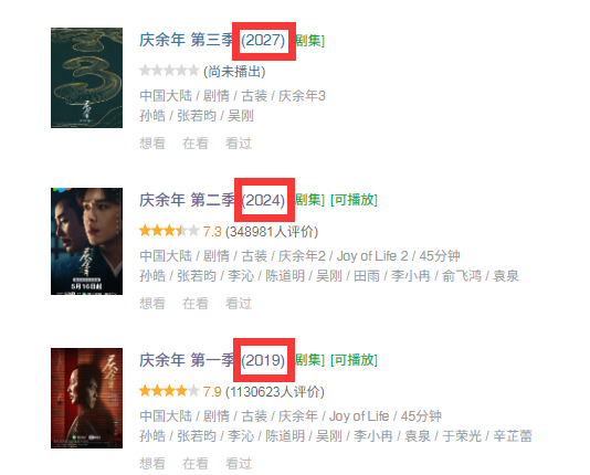 季播剧的理想状态,是每一两年拍摄播出一季的英美剧,半理想状态是《庆余年》系列这样三五年能做出一部续集作品,不理想状态是很多大IP男频剧在结局“第一季完”后就再也没有下文。