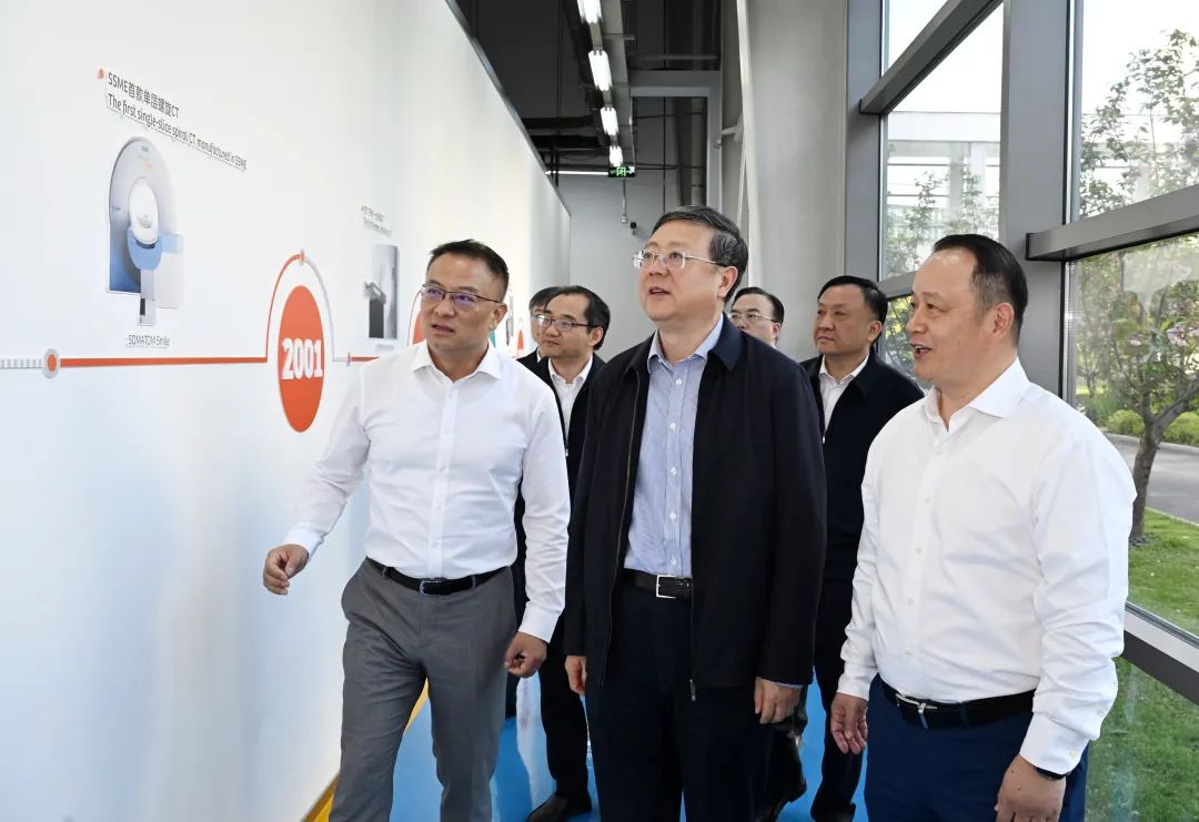 作为全球领先的医疗科技公司,西门子医疗在沪设有3家贸易企业、2家生产研发工厂和1家全球开放式创新中心。陈吉宁来到上海西门子医疗器械有限公司,在产线车间察看高端诊断设备及试剂样品,听取公司研发生产、生态构建情况介绍。作为西门子医疗重要的全球研发和制造中心之一,公司生产的医学影像及临床治疗设备销往全球150余个国家和地区,过去三年总计约有20款高端医疗设备在这里研发生产。陈吉宁同公司负责人座谈交流,听取企业对行业发展趋势的研判、深耕拓展在华业务的设想,就企业下一步发展面临的问题和所需服务支持,作了具体回应和政策宣介。