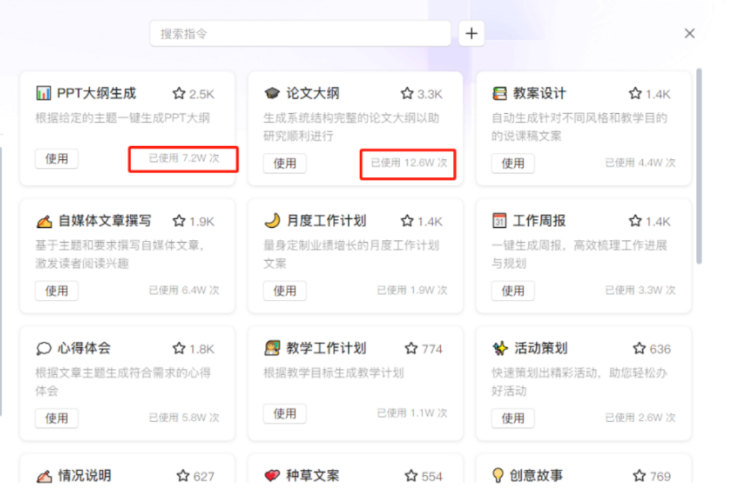 但实际使用WPS AI的用户数量并不多,在WPS电脑版和手机端月度活跃设备数分别为2.70亿、3.29亿的情况下,WPS AI月度活跃用户数只有1968万。其中,最热门的“论文大纲”指令累计使用次数仅12.6万次,排名第二的“PPT大纲生成”累计使用量仅7.2万次。
