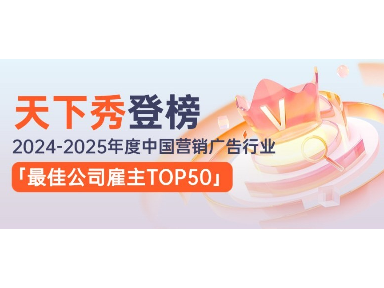 近日,由中国广告网发起的《2024—2025年度中国营销广告行业最佳公司雇主》评选活动TOP50榜单正式出炉。天下秀数字科技集团(以下简称“天下秀”)凭借卓越的创新实力与雇主品牌魅力强势登榜。