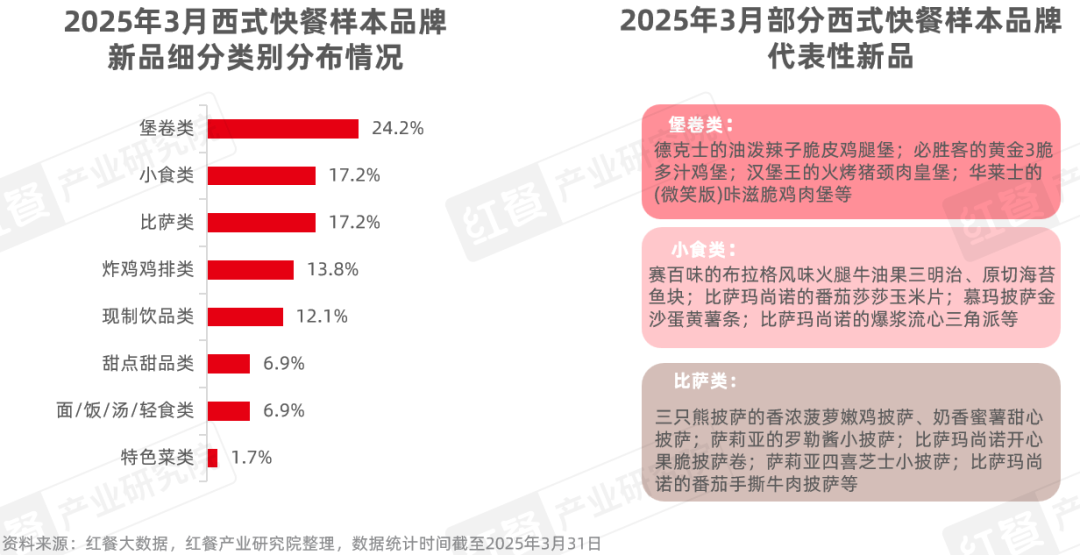 1.西式快餐:堡卷类新品最多,上新走向多维发展