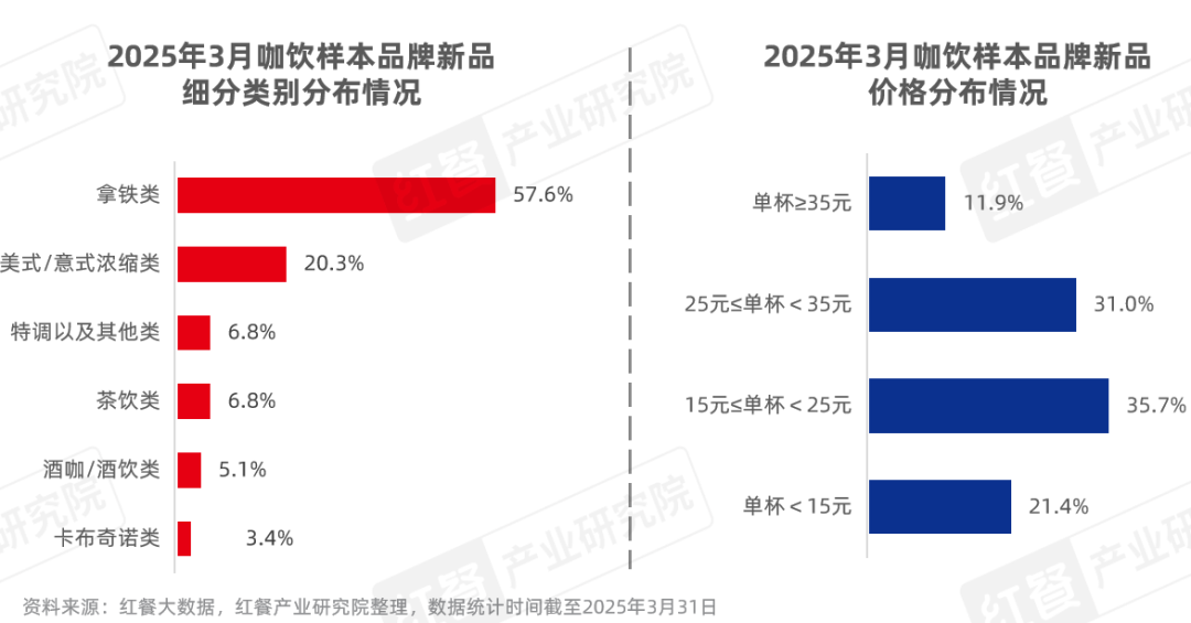 4.咖饮:拿铁类新品热度“居高不下”,新品价格整体集中在25元以下