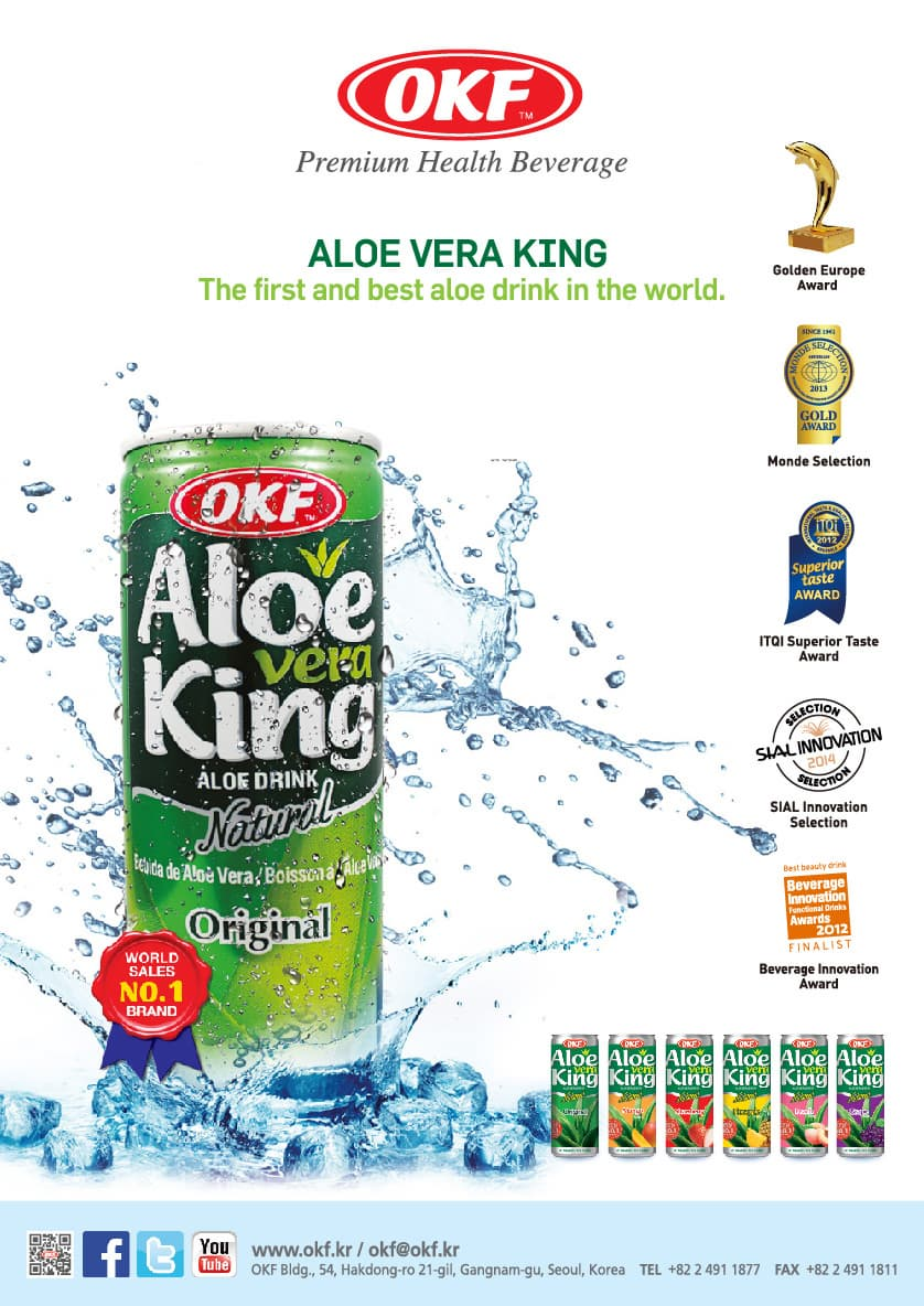 这个公司叫做OKF,它的产品在全球芦荟饮料市场占有率一度达到76%。[1]从荷兰的超市到迪拜的机场,再从美国的有机食品店到非洲的加油站,这款名为Aloe Vera King(芦荟王,下文均称芦荟王)的芦荟饮料已登陆180+个国家和地区。而它背后的公司,是一家自成立起就决定瞄准海外市场的韩国公司,通过足够的“垂”在缝隙里找到了自己的位置。
