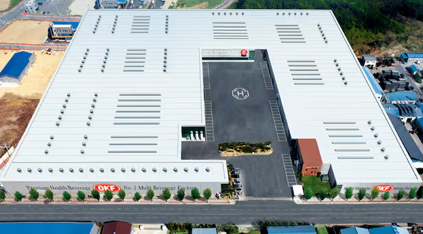 OKF的安东工厂是韩国首个获得美国FDA认证的工厂,占地约3万平米。当时,这个工厂是全球最大的多元饮料生产基地,是韩国最大的单一品类生产线,能够每天生产800万瓶饮料。到了2021年,OKF的第10工厂、第5物流中心、第15生产线完成,这个历时12年的出口生产基地项目,总投资达到了1800亿韩元(约为8.96亿元人民币)。[1]