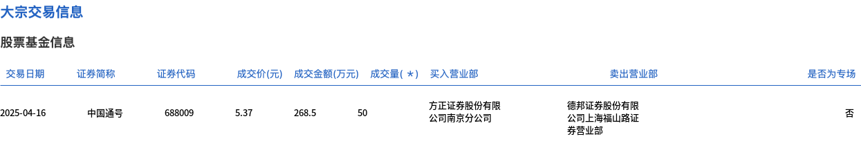 中国通号今日大宗交易平价成交50万股,成交额268.5万元