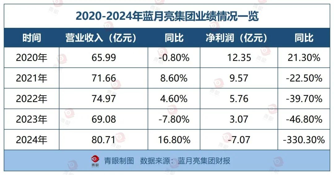 不仅如此,拉长时间线来看,蓝月亮集团自2020年上市以来的业绩表现整体承压。具体来看,自2021年起,其营收总体呈现出增长的态势,仅2023年有小幅下滑;但就净利润而言,2020-2024年,其净利润连年下跌,直至2024年亏损超7亿元。