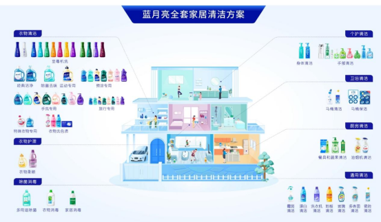 根据蓝月亮官网,目前蓝月亮已建立起涵盖衣物清洁护理、个人清洁护理及家居清洁护理三大品类的产品组合,旗下产品覆盖了衣物清洁、个护清洁、厨房清洁、除菌消毒等细分品类,主要包括洗衣液、洗手液等产品。