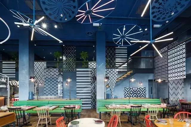 但随着专业设计师的介入,餐厅的空间设计和色彩搭配也有了更多的亮眼创新处,餐厅灯光也不落窠臼有了许多绝妙的设计。