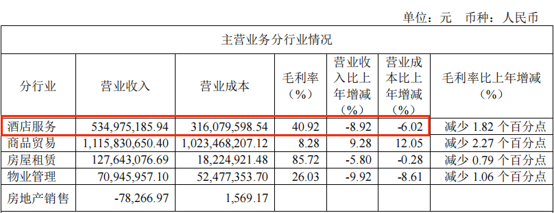 除了去年整体的增收不增利,其核心主业酒店服务业务在营收、毛利率及占公司整体营收比重均同比下降。