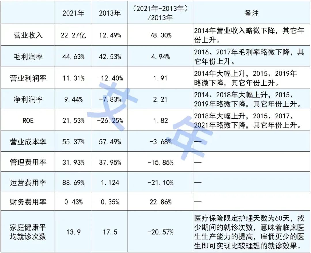 Amedisys 2021年、2013年主要财务指标,根据年报整理