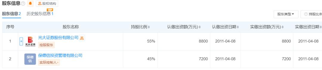 光大保德信基金2004年在上海成立,由光大证券和保德信投资共同创建,两家股东分别持有55%和45%的股份。