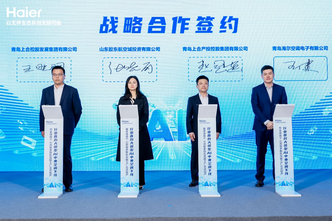 现场,杭州圣奥集团作为海尔物联多联机的老用户,共同见证了首创大模型AI中央空调的下线仪式。活动最后,海尔智慧楼宇还与威凯检测共建了全国首个多联机AI技术联合研究实验室。