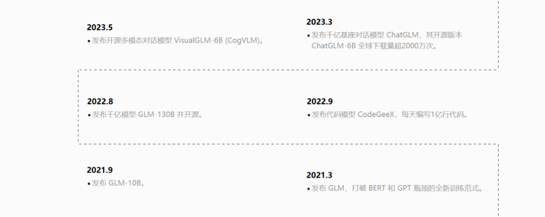 智谱的研发成果时间线(局部),图源智谱AI官网