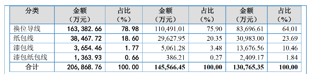 从营收构成来看,2022年至2024年(下称“同期”),换位导线业务成为宏远股份的主要收入来源。三年内,换位导线的收入分别为8.37亿元、11.05亿元和16.34亿元,占公司总营收的60%以上,撑起营收“大半壁江山”。