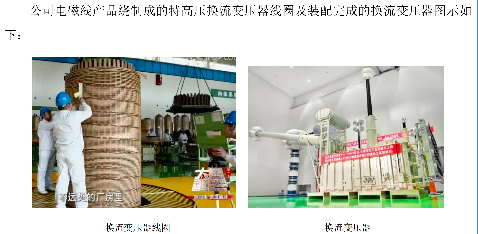 电磁线在电力系统中至关重要,负责电能与磁能的转换,公司借此打造出换位导线、纸包线等产品。这些产品应用于高电压、大容量的电力变压器、换流变压器及电抗器等核心电力设备。它们对保障电力系统稳定运行至关重要。