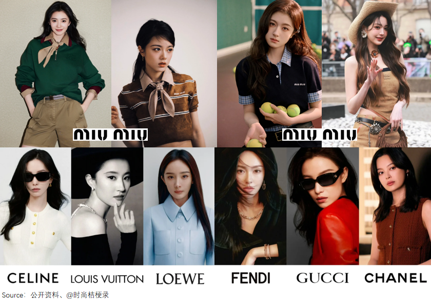 这种独特的风格,在品牌大使的选择上就有明显的体现:当LV、香奈儿们追求高格调,选择成熟稳重、事业有成的“85花”代言时,MiuMiu唯爱新晋的“00后流量花”,宣传照里扑面而来全是青春的气息。
