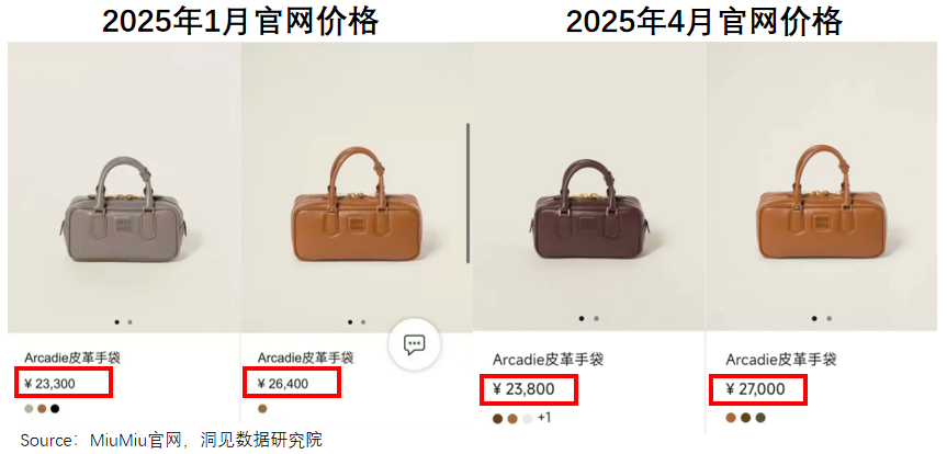 更何况,近两年MiuMiu售价越标越离谱,“很多一万多的包,都涨到了2万。”莫莫吐槽,以保龄球包为例,今年初还是2万6,转眼又涨了近千元。
